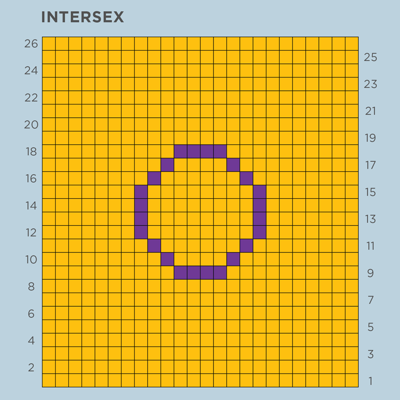CO with first stripe color and BO with last stripe color. Flags are worked from the bottom up. For Intarsia patterns (Progress, Demi-Sexual/Romantic) follow full charts. The Intersex flag chart is for Duplicate Stitch. For striped flags, follow charts for number of rows in each stripe; color changes can happen on RS or WS. Below the charts, we’ve provided written stripe row counts for the 3, 4, 5, and 7 stripe flag styles. With our materials we got the approximate finished size of 4.5″ by 3.5″. Gauge is unimportant, just make a fabric you like!