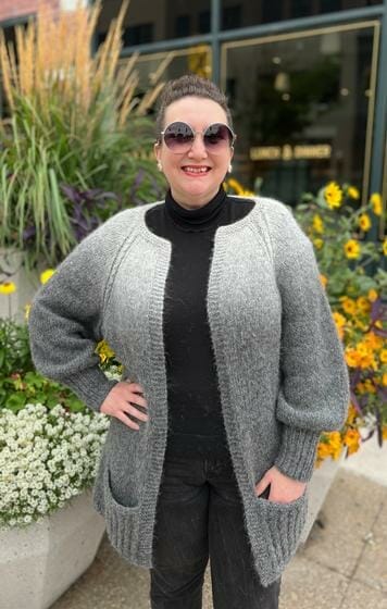 The Susurrus Cardi (named after the sound of rustling leaves), is a sweater coat knitting pattern inspired by cooling weather and practicality. Knit in the suggested alpaca and wool blend blown-spun yarn, it’s warm but lightweight, perfect for an autumn walk, running errands, or chilling at home with a cup of tea.