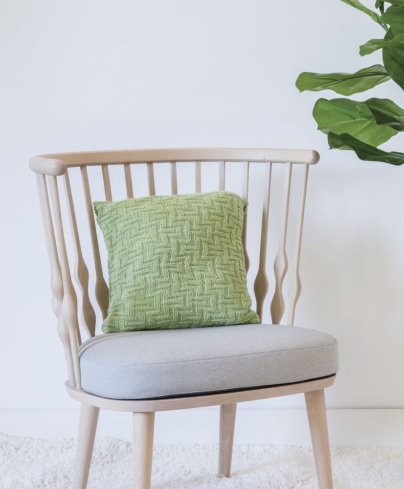 The Labyrinth Pillow is a beautiful textured accent piece that will easily fit into any style of home décor. This pillow is worked flat and seamed together on both sides and the bottom. The front of the pillow has added length knit in Garter Stitch with buttonholes which folds over the top of the pillow buttoning on the back allowing for easy removal.