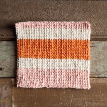 Hudson's Bay stripes are an absolute classic, known as much for being hard-wearing as they are beautiful. This dishcloth celebrates the spirit of modern simplicity with stockinette stitch in four colors of "Dishie" yarn. Make this dishcloth as written, or extend the off-white color "swan" to a longer length, repeat the stripes, and make a lovely hand towel! |