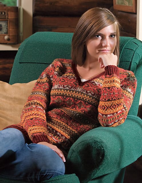 Knit in Wool of the Andes Worsted, this is a perfect project to customize with your favorite colors! We can see this in shades of blues or reds – or even yellows. With 100 colors, it’s easy to find your favorite color shift. And this is a great first sweater project too – it’s worked in simple stockinette stitch from the bottom up with light shaping. The striping is simple too, using single rows of striping, which results in fewer ends to weave in.