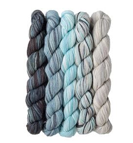 We toned down the chromatic energy just a tad with these 3 new curated mini packs, opting instead for icy wintry blues, succulent greens, and stony greys. The perfect size for mini knits and easy care gifts! Each pack comes with 5 – 20 gram hanks, for a total of 100g.